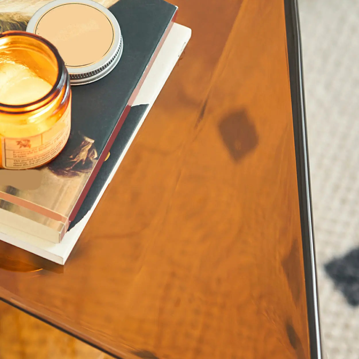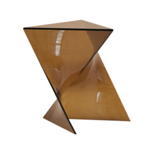 Dieser braune Acryl-Beistelltisch setzt einen klaren Akzent im Raum. Die dreieckige Form wirkt wie ein kleines Kunstobjekt. Die Linien sind scharf, aber nicht hart. Das Acryl ist glatt, durchsichtig und hat einen warmen Braunton, der Licht schön einfängt. Der Tisch wirkt leicht, auch wenn er stabil steht. Genau das macht ihn so vielseitig.