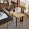 Dieser skandinavische Esszimmerstuhl verbindet klare Linien mit natürlicher Wärme. Der Rahmen besteht aus stabilem Holz. Die Oberfläche fühlt sich glatt an und zeigt eine ruhige Maserung. Die Rückenlehne ist weich gepolstert. Sie stützt den Rücken angenehm und bleibt auch bei längerem Sitzen formstabil. Die Sitzfläche ist ebenfalls leicht gepolstert und sauber verarbeitet. Die Proportionen wirken typisch skandinavisch: schlicht, freundlich und leicht.