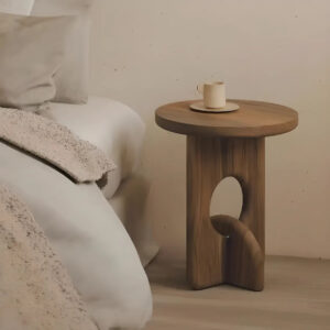 Die Konstruktion bleibt stabil, weil das Gestell aus massivem Holz besteht. Jede Verbindung sitzt fest, sodass der Tisch im Alltag zuverlässig bleibt. Durch die kompakte Größe passt er gut neben Sofa, Bett oder Lieblingssessel. Er eignet sich als Beistelltisch, Nachttisch oder als kleine Ablage für Pflanzen und Deko.