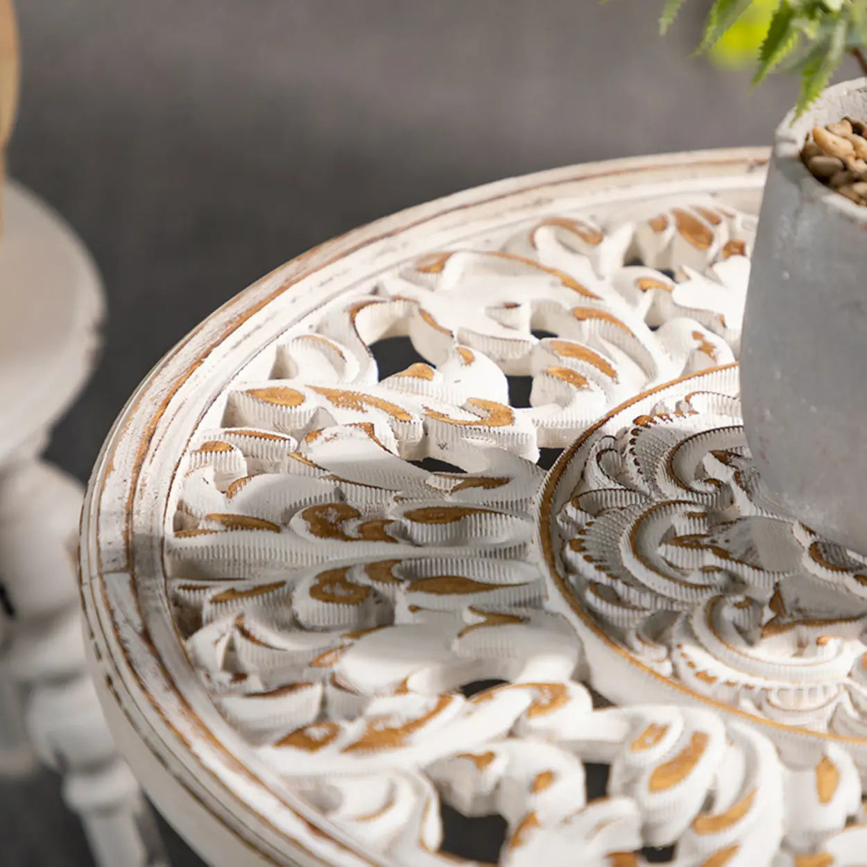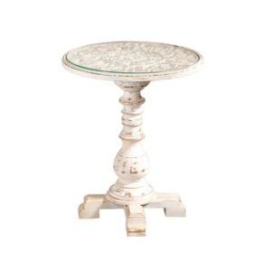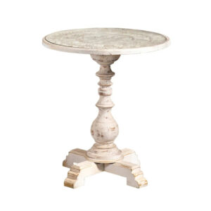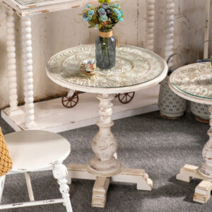 Here’s the thing: Der Tisch sieht antik aus, aber er funktioniert wie ein modernes Möbelstück. Die Oberfläche ist glatt und sauber verarbeitet. Die Patina ist fest versiegelt, sodass sie sich nicht abreibt. Die Ablagefläche ist groß genug für eine Lampe, Bücher, Deko oder eine Tasse Kaffee. Gleichzeitig wirkt der Tisch nicht schwer im Raum. Er fügt sich in romantische, rustikale und helle Wohnkonzepte ein.
